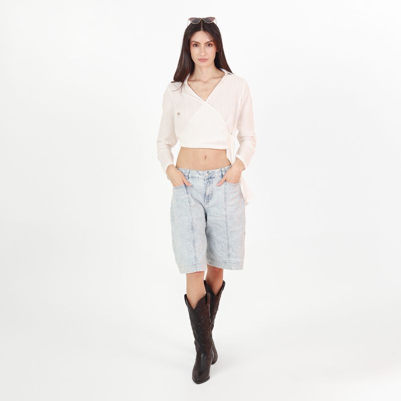 Blusa Cuello V Manga Larga con Lazo