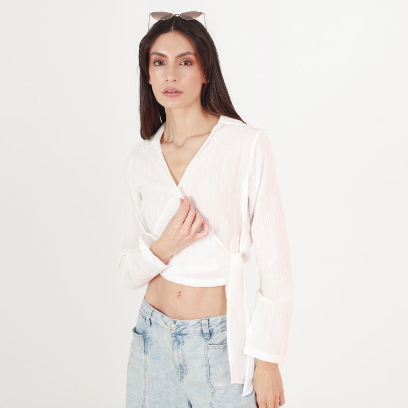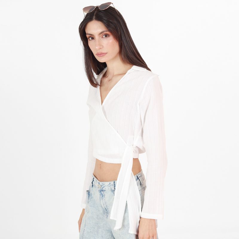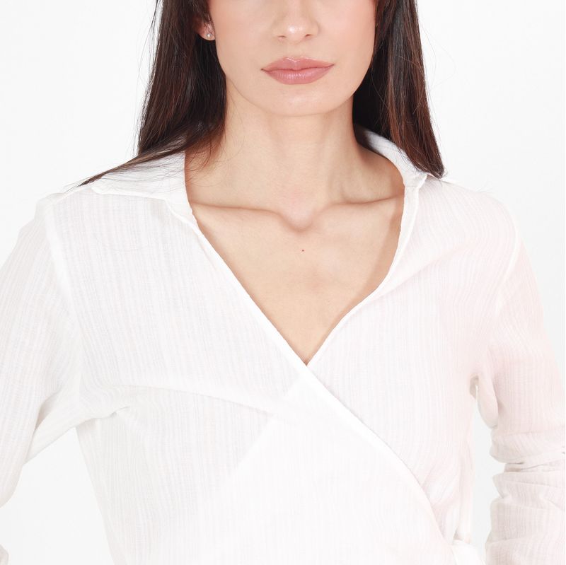 BLUSA MANGA LARGA ESCOTE EN V CON LAZO PARA AJUSTAR EN COSTADO.