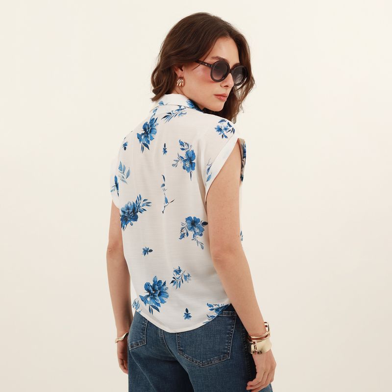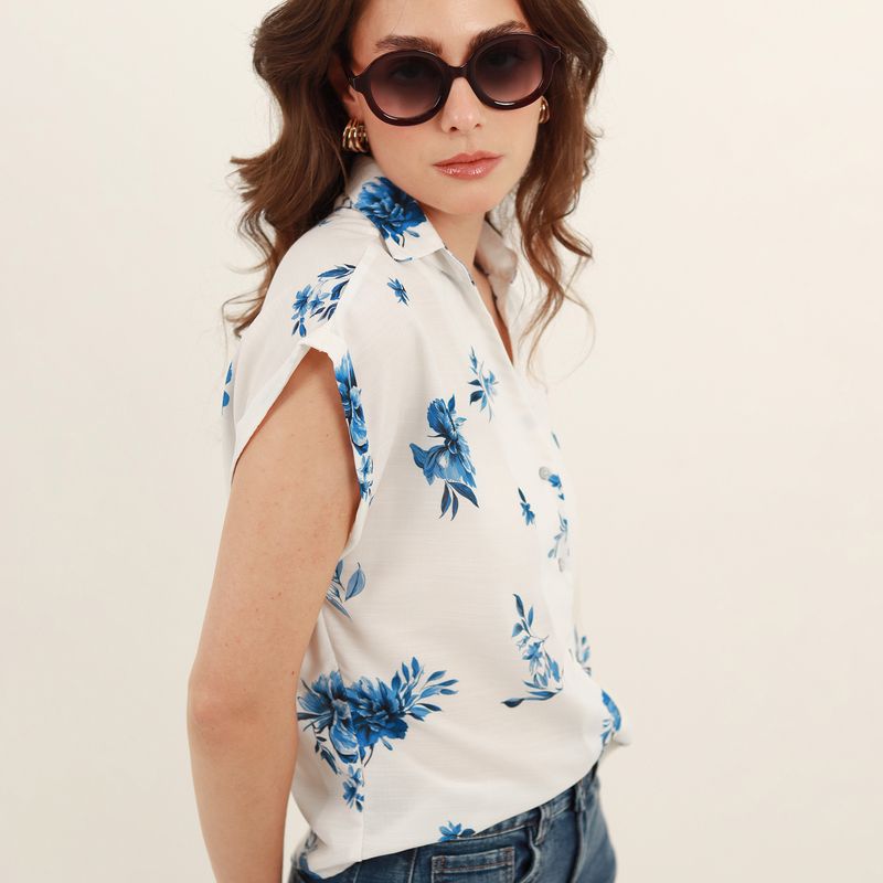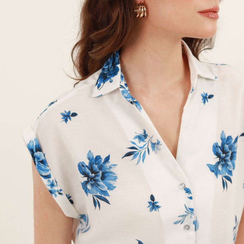 BLUSA MANGA CORTA RODADA CUELLO SPORT MANGA CON GUARDAPOLVO Y BOTONES EN DELANTERO