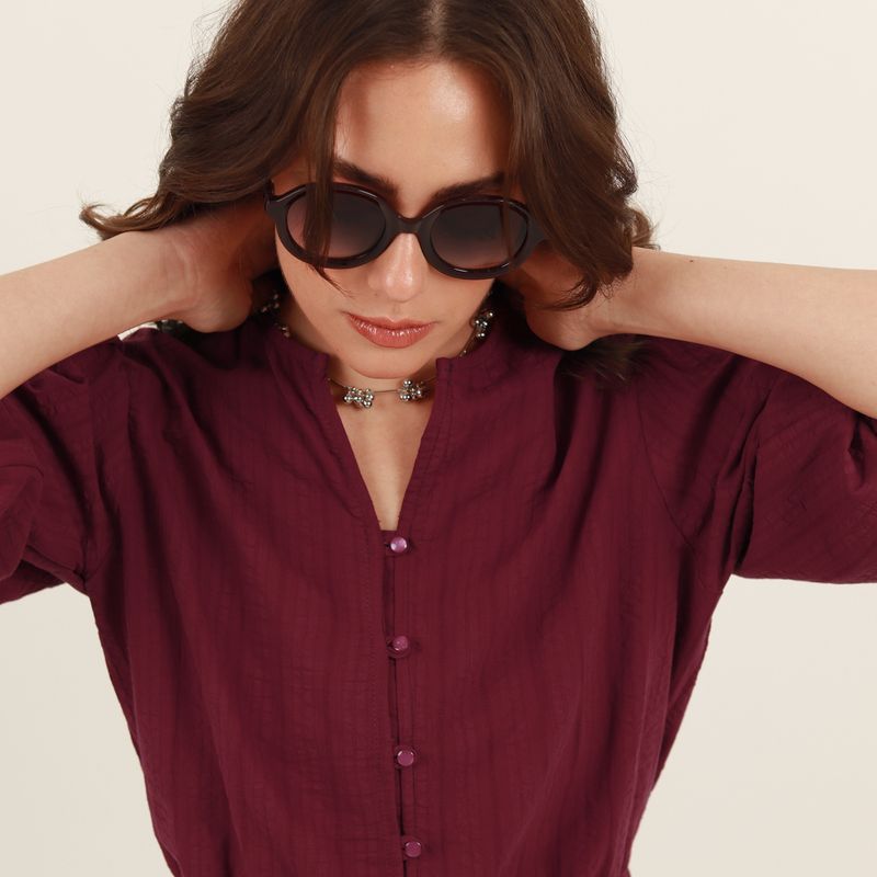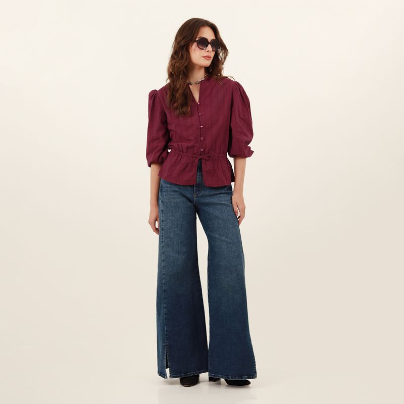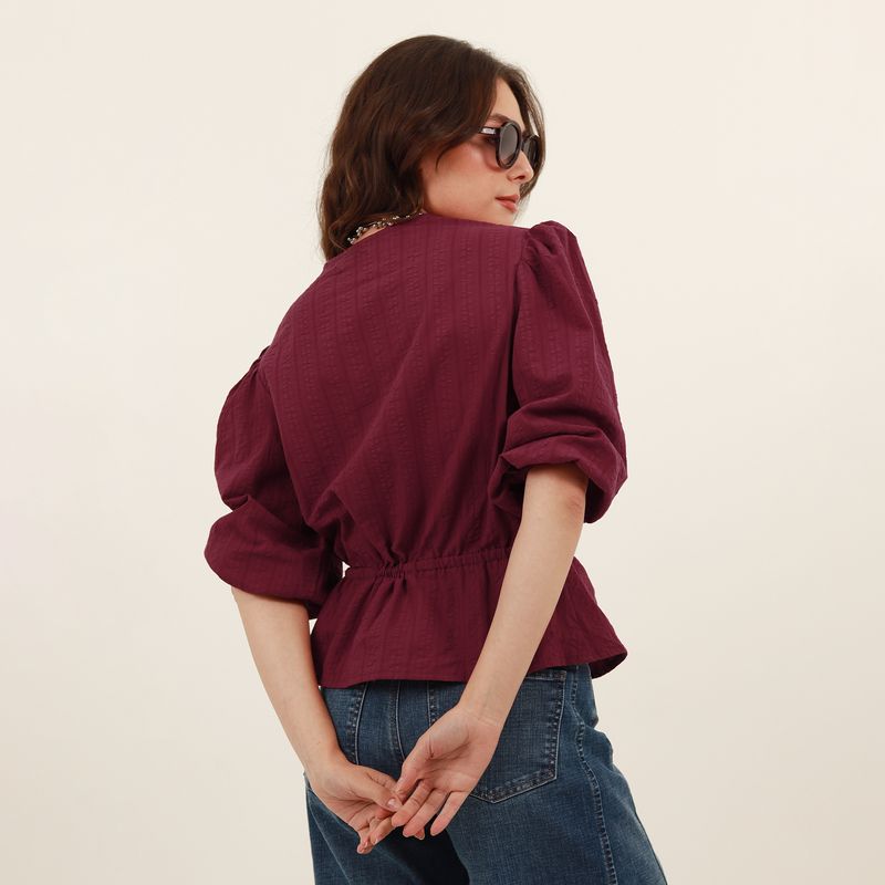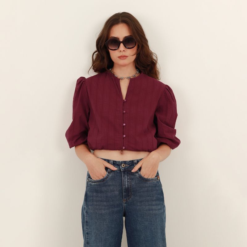 BLUSA ESCOTE REDONDO MANGA 3/4 CON ELASTICO EN PUNO