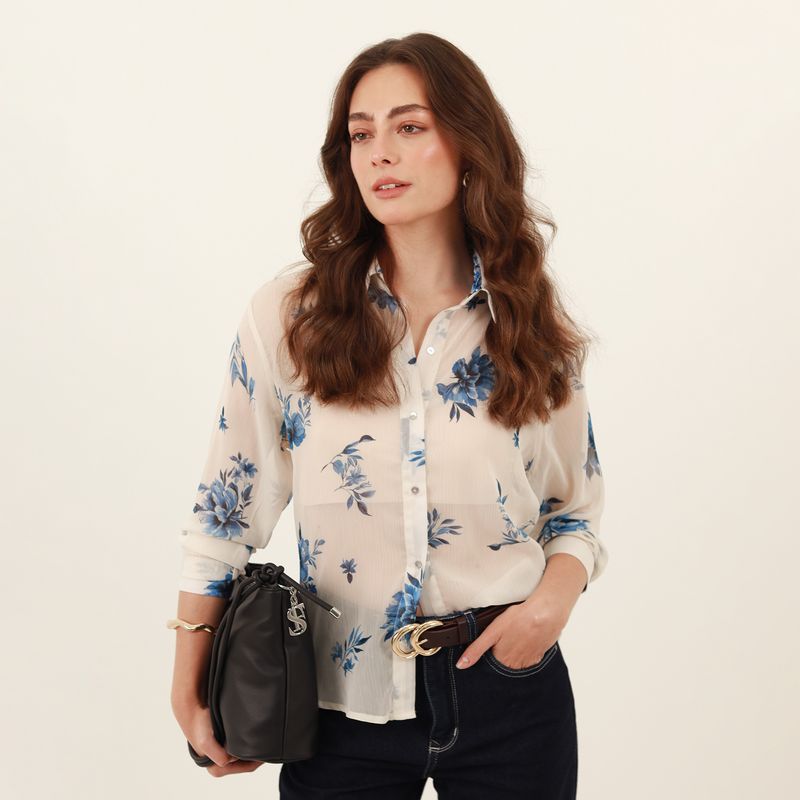 CAMISA MANGA LARGA CUELLO CAMISERO CON BOTONES EN PECHERA Y PUNOS