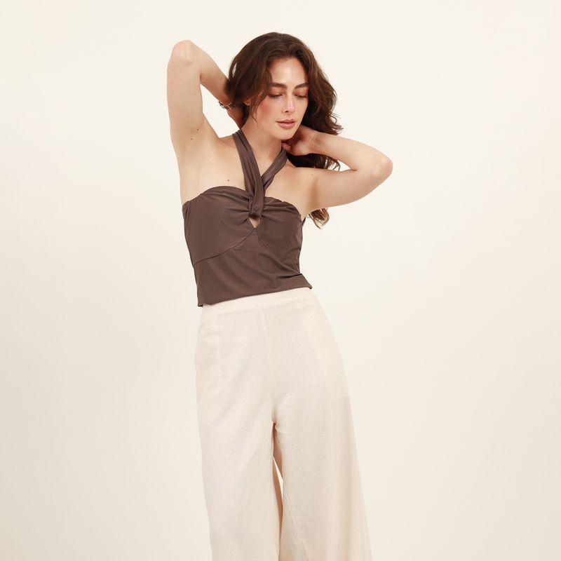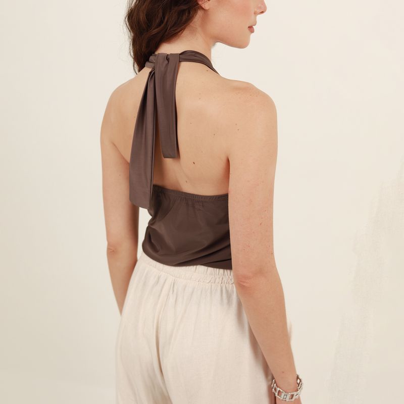 Camiseta Strapless Con Tira Para Anudar En Cuello