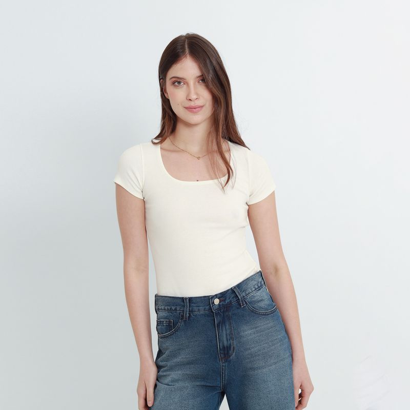 CAMISETA MANGA CORTA CON ESCOTE CUADRADO.
