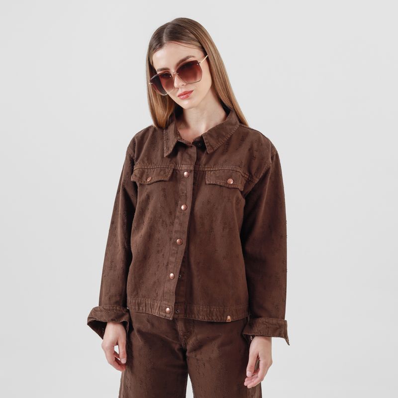 CHAQUETA OVERSIZE MANGA LARGA CUELLO SPORT BOLSILLOS DE PARCHE CON BROCHES EN DELANTERO Y PUÑOS