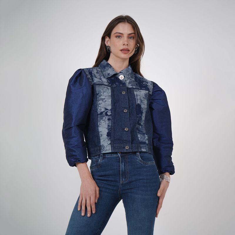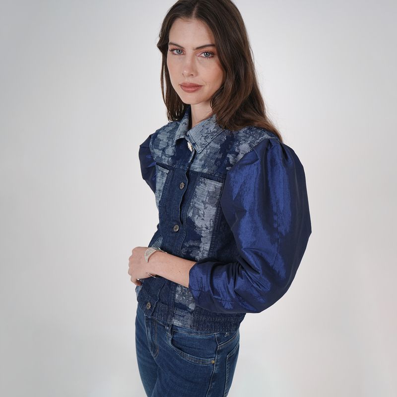 CHAQUETA MANGA 3/4 EN TELA COMBINADA CUELLO SPORT BOLSILLOS DE PARCHE CON BOTONES EN DELANTERO