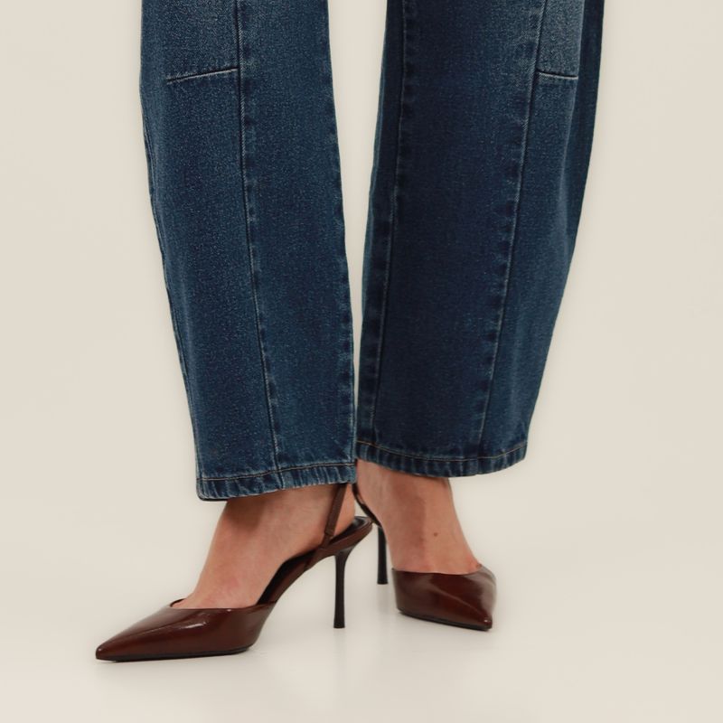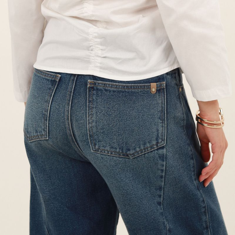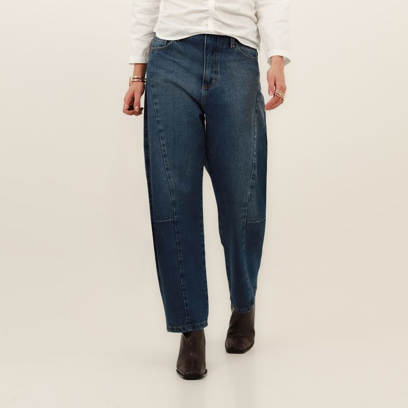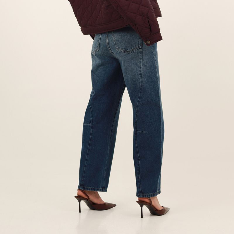 JEAN MOMFIT BARREL CORTES EN EL COSTADO Y PINZA EN RODILLA EN CORTE LATERAL COTILLA EN TRASERO
