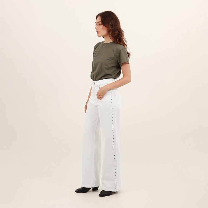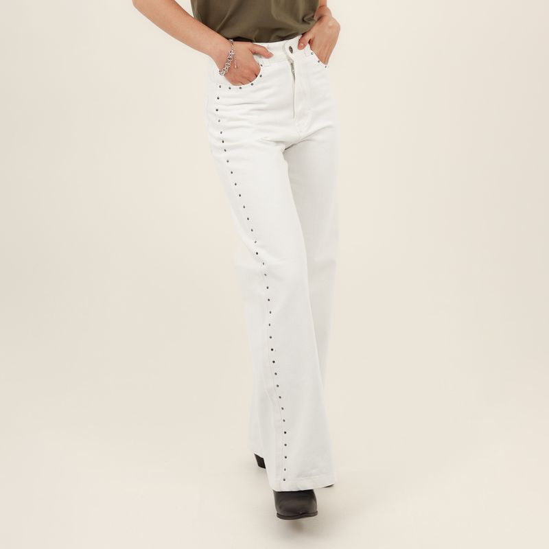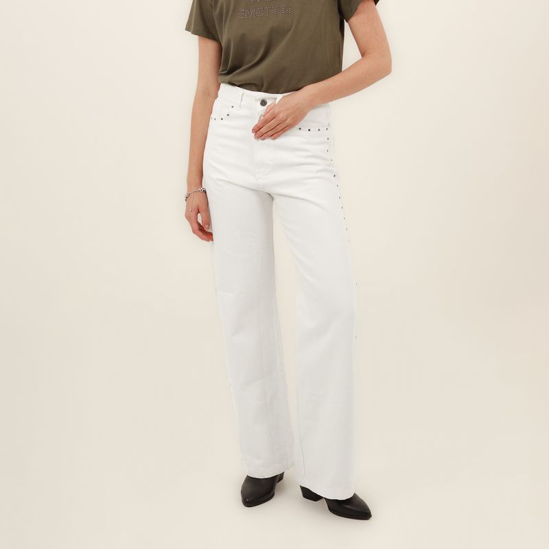 JEAN 5 BOLSILLOS BOTA FLARE CON TACHES EN DELANTERO Y COTILLA EN ESPALDA