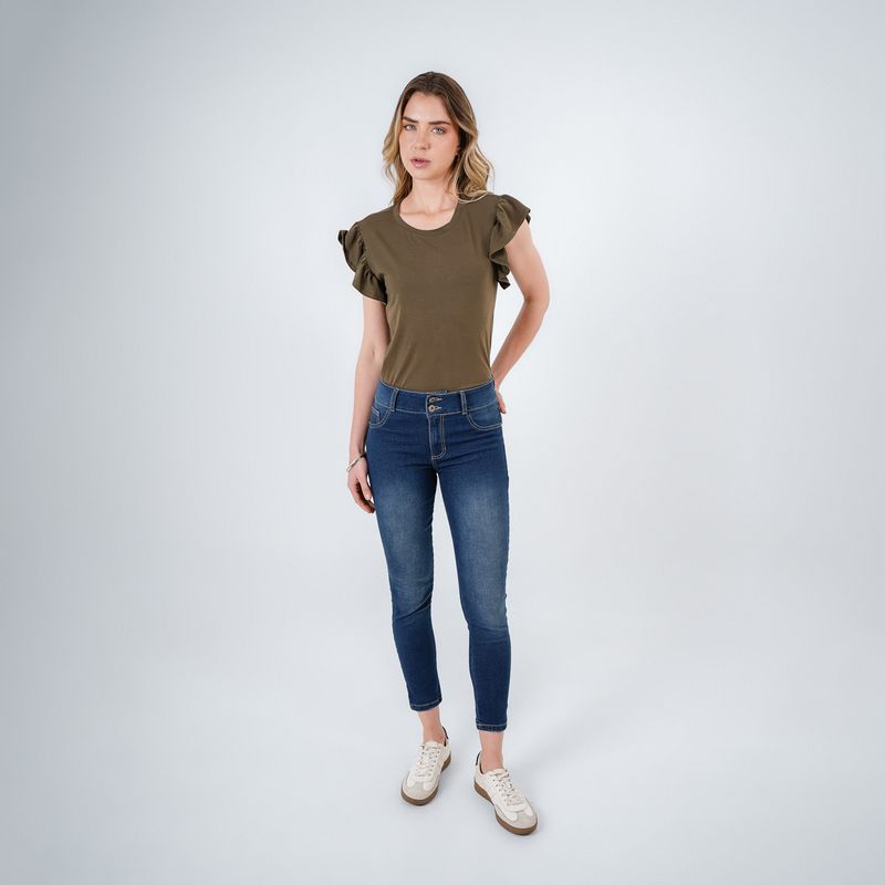 JEAN 5 BOLSILLOS BOTA SKINNY CON DOS BOTONES EN PRETINA Y COTILLA
