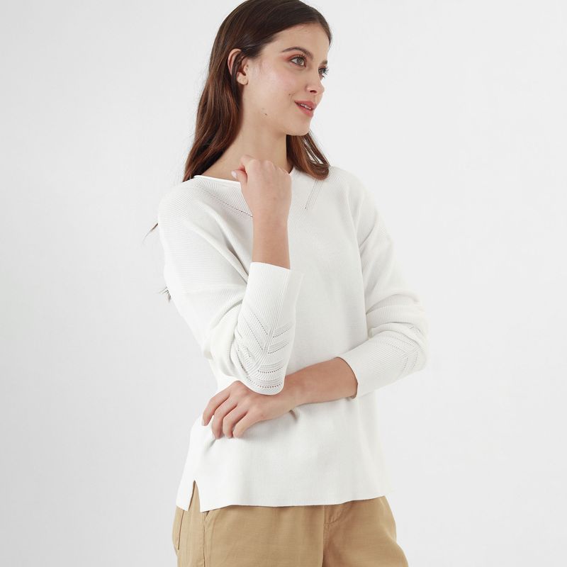JERSEY BASICO CUELLO OJAL, MANGA LARGA CON DETALLE TRANSPARENCIA EN LA PARTE SUPERIOR