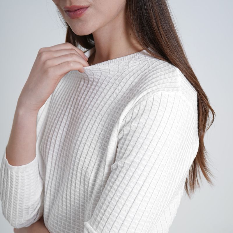 JERSEY TEJIDO WAFLE DE CUELLO REDONDO ALTO Y MANGA LARGA.